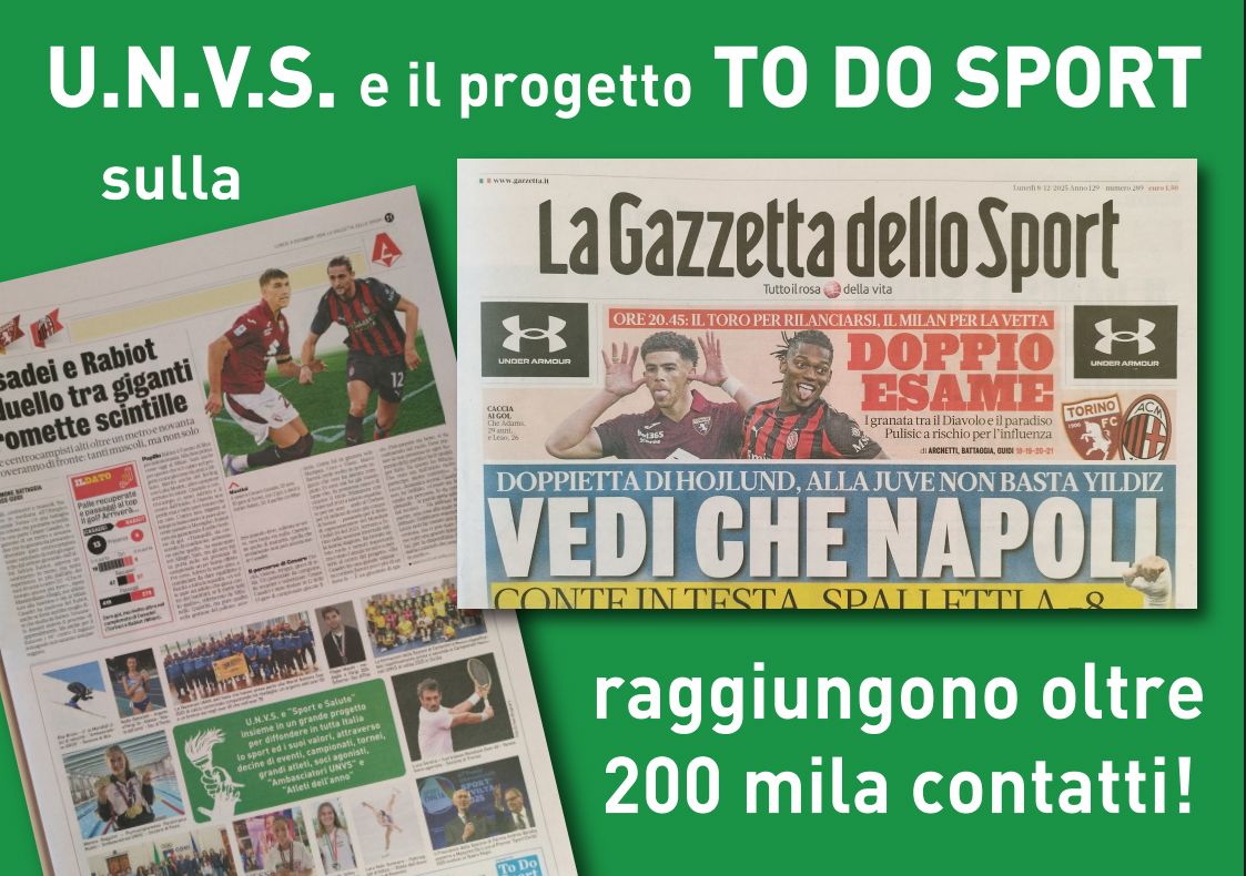 I Veterani dello Sport sulla Gazzetta per il progetto Progetto To do Sport