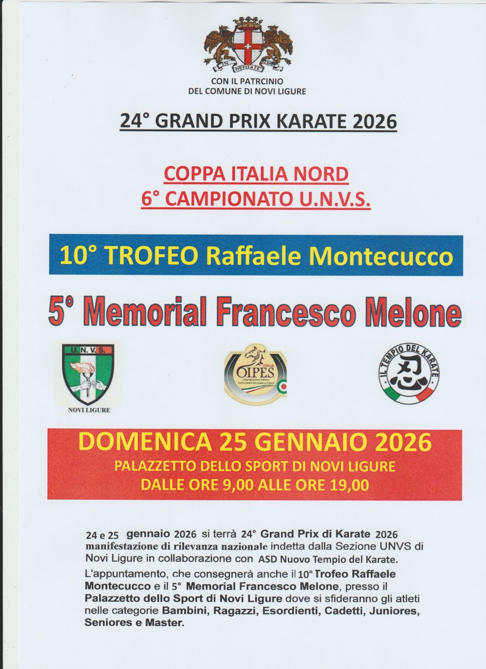 24° GRAND PRIX KARATE 10° TROFEO RAFFAELE MONTECUCCO NOVI LIGURE PALASPORT 25 GENNAIO 2026