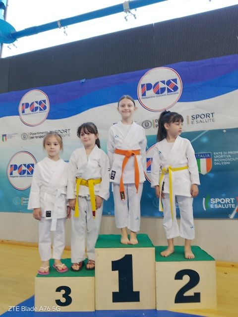 Nel Palloncino : primo posto e titolo di Campione Italiano per Marija Kostadinova (cint.arancio cat. fanciulli) che si dimostra inarrestabile anche nel kata (primo posto) e nel kata squadre ove, con Miriam Pollone (verde) e Bianca Oliviero (verde) si concretizza la conquista del gradino più alto.