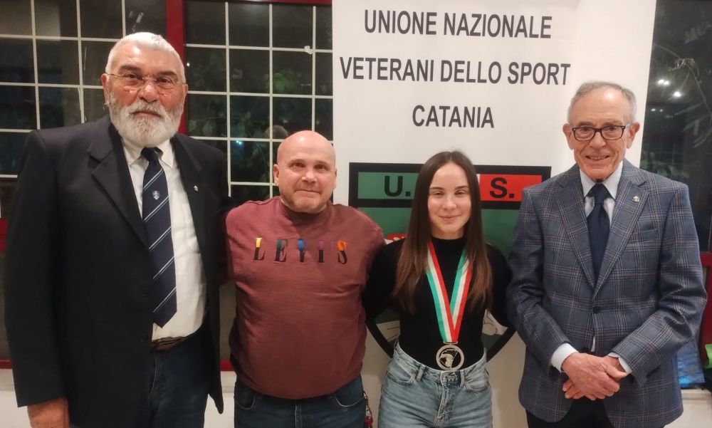 A dicembre nella sala riunioni del campo di hockey su prato di Catania, si è svolta l’annuale manifestazione per il conferimento delle benemerenze UNVS per la sezione di Catania, con particolare riferimento alla nomina di Atleta dell’Anno e degli Ambasciatori UNVS. Il premio quale “Atleta dell’Anno” è stato assegnato alla pattinatrice diciottenne Martina Castorina, studentessa al primo anno di università, che ha unito l’impegno nello studio al Liceo Linguistico a risultati sportivi di livello europeo e internazionale. In particolare vanta le medaglie d’oro ai Campionati Italiani su pista, ai Campionati Italiani su strada nei 10 mila metri a punti e sulla distanza di metri 15000 ad eliminazione. Ha, inoltre, conquistato una medaglia d’argento ed una di bronzo ai Campionati Europei di Gross-Gerau in Germania ed ha anche partecipato, con la Nazionale ai Campionati Mondiali in Cina, con buoni risultati. Quest’anno il direttivo ha voluto conferire un premio speciale anche a Paolo Castorina, campione italiano cadetti di lancio del giavellotto, con un personale di metri 59,69 e un lancio del Vortex a m. 78,51 nel 2023, stabilendo così la seconda migliore prestazione di sempre nella categoria ragazzi.