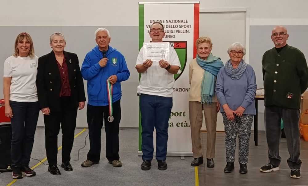 Il Consiglio direttivo della Sezione “L. Pellin” di Cuneo, dopo averne vagliato accuratamente le caratteristiche sportive e sociali, ha deciso di assegnare il titolo di “Atleta dell’anno” 2025 a Enrico Gentile. Atleta “Special Olimpics” da oltre 20 anni tesserato per l’ASD-APS Amico Sport di Cuneo con cui svolge attività sportiva in varie discipline, con particolare passione per gli sport invernali, soprattutto lo sci alpino. Presso la sede di Amico Sport un folto numero di atleti, genitori, volontari e simpatizzanti ha partecipato con entusiasmo alla cerimonia di consegna del premio. I Veterani cuneesi erano rappresentati oltre che dal Presidente Giovanni Aime e dal Vicepresidente Guido Cometto dai soci Pinuccia Marabotto, Teresa Maineri, Franca Serale e Valter Fantino, Assessore allo Sport. La partecipazione del Sindaco di Cuneo Patrizia Manassero ha dato ancor più rilievo all’evento, a dimostrazione di come l’amministrazione comunale sia vicina alle associazioni ed allo sport locale.