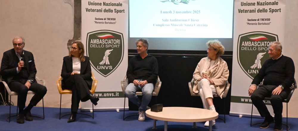 La quarta sessione ha ospitato le testimonianze dei Soci che negli anni han fatto parlare di sé le cronache per grandi imprese sportive: Alessandro Fassina (automobilismo) dal 2021 Ambasciatore UNVS, che nel 1991 partecipa al Campionato Mondiale Rally e si laurea Campione Iridato auto di produzione nel 1993; Federico Fregnan (motociclismo) dal 2022 Ambasciatore UNVS, nella Regolarità Vintage, oltre a numerosi Titoli Italiani ed Europei, Campione Mondiale classe 75cc dal 2022 al 2025; Luciana Montelatici (pallacanestro) 43 convocazioni in Nazionale, due Campionati Europei 1983 e 1985, qualificazioni alle Olimpiadi di Cuba 1984, allenatrice benemerita FIP, conquista il Campionato Europeo 2023 con la formazione Golden Players Italia over60; Luca Serena (tennis) dal 2002 si afferma a livello mondiale, numero uno del mondo in singolare over35 ITF World Master Tour (2015-2016-2018), numero uno del mondo in doppio over35 ITF (2018); capitano Nazionale Azzurra vincitrice Titolo Mondiale over40 (2022-2023), oro in doppio ITF World Championships (2024), Campione Italiano over 45 (2025). Virginio Trentin (maratona) si aggiudica nel 2015 il Titolo Mondiale maratona SM60, nel 2021 i Titoli Italiani maratona, mezza maratona, 50km, nel 2022 il Titolo Europeo 10km su strada; Flavia Zanfrà (tiro a segno), veste la maglia della Nazionale dal 1977 al 1991, Olimpionica di Seul nel 1988, che in carriera ha vinto 28 titoli italiani ed è detentrice del nuovo record Master Donne Carabina Sportiva a terra.