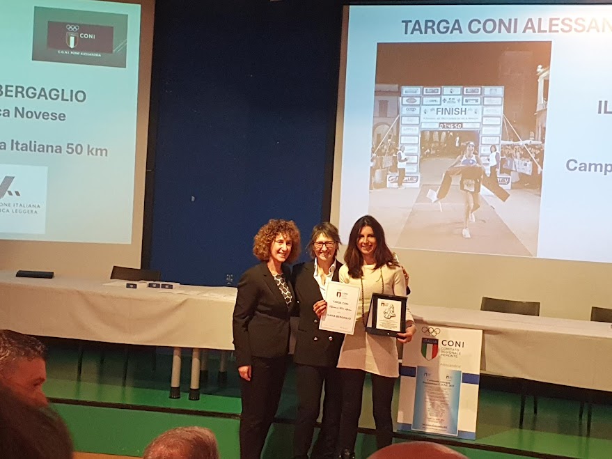 La targa CONI Alessandria è stata assegnata alla Ilaria Bergaglio campionessa italiana nella distanza dei 50 chilometri atleta portacolori della Atletica Novese e Ambasciatore UNVS.