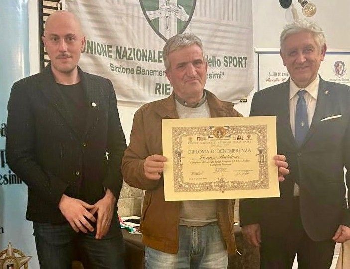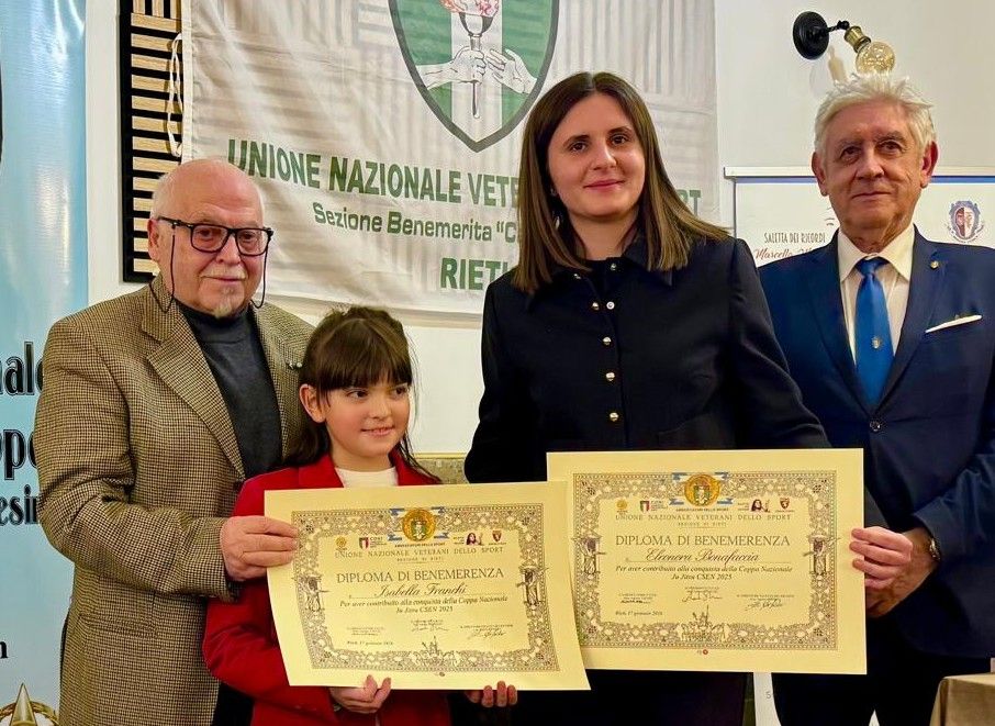 Per il Consiglio Direttivo UNVS presente l’Ambasciatore UNVS Antonio Tavani, accompagnato da Umberto Fusacchia, dal Cavaliere Enrico Di Sisto ed il Presidente Andrea Strinati (che ha ribadito come questi riconoscimenti rappresentino un ponte tra passato, presente e futuro dello sport). Ha inoltre preso parte alla serata Alfredo Serva, in qualità di Vice Presidente dell’Associazione Culturale “Saletta dei Ricordi”, realtà impegnata nella tutela della memoria storica e sportiva del territorio e Maurizio Simonetti in rappresentanza del Panathlon club Rieti.
