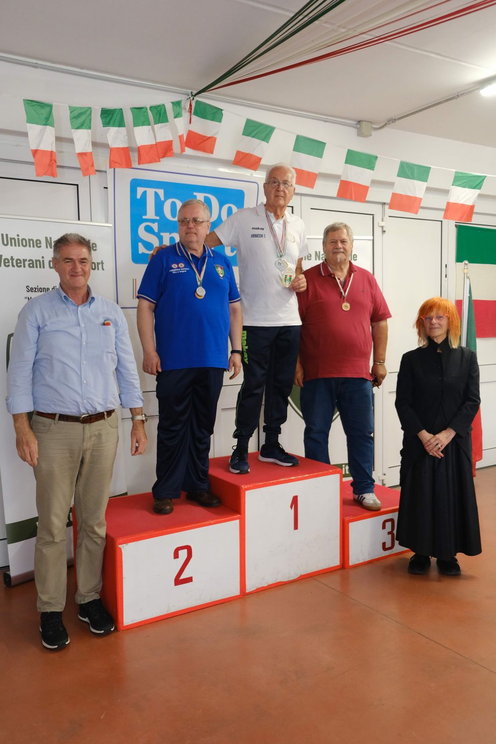 Vincono nella Pistola Sportiva Paolo De Francesco-fascia B (Borgomanero), nella Pistola Standard i soci di UNVS Vicenza Umberto Impalmi-fascia A, Jurij Dalla Santa-fascia B, Tommaso Virnicchi- fascia C (Imola).