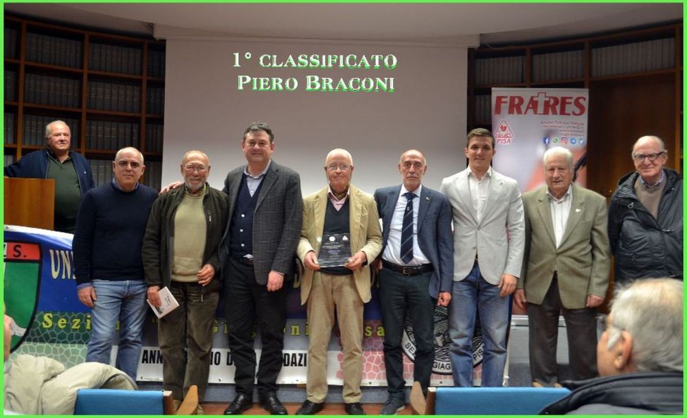 La giuria presieduta dall’Avv. Lorenzo Gremigni, grande esperto di vernacolo, dopo un’attenta valutazione degli 11 sonetti in concorso, ha proceduto alla stesura della classifica. Vincitrice di questa edizione è risultato Piero Braconi con il sonetto “Veterani dello Sport”, un bel componimento che rende omaggio ai Veterani dello Sport con accenti di dichiarato orgoglio patriottico e sportivo. Riteniamo che meriti di essere riportato nel riquadro. Seconda classificata è Sabrina Valentini con il sonetto “La ‘accia”, una vernacolista emergente già prima classificata nell’edizione 2024, che dedica la propria riflessione al delicato tema della caccia e al suo discutibile accostamento allo sport. Il terzo posto è andato a Fabrizio Paolicchi con il sonetto “Er carcio ‘n della ‘asa”, che in un simpatico quadretto familiare ritrova uno spunto sportivo intriso di autentica umanità. Quarti classificati ex aequo gli altri partecipanti: Giacomo Barsanti con “La Paolini? Un mito”, Stefano Bianchi con “La maglia vera der Pisa gliè rossa”, Valfredo Ciuti con “Ir dubbio”, Dina Paola Cosci con “Rimpianto”, Alessandro Funel con “T’amo Edo Bove”, Enrico Pelosini con “Tre ottave sur Pisa”, Fulvio Sodi con “Lo spòrte ar primo posto”, Paolo Stefanini con “Ir tennista ganzo”